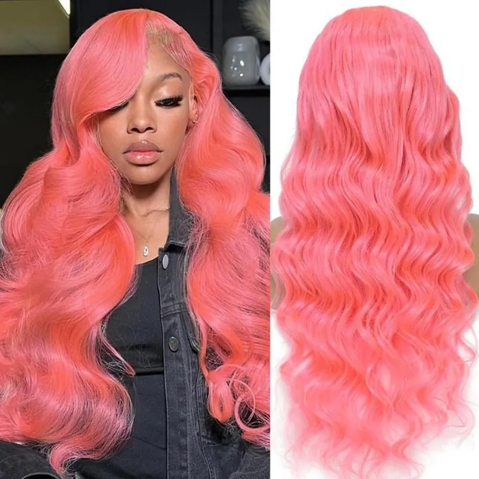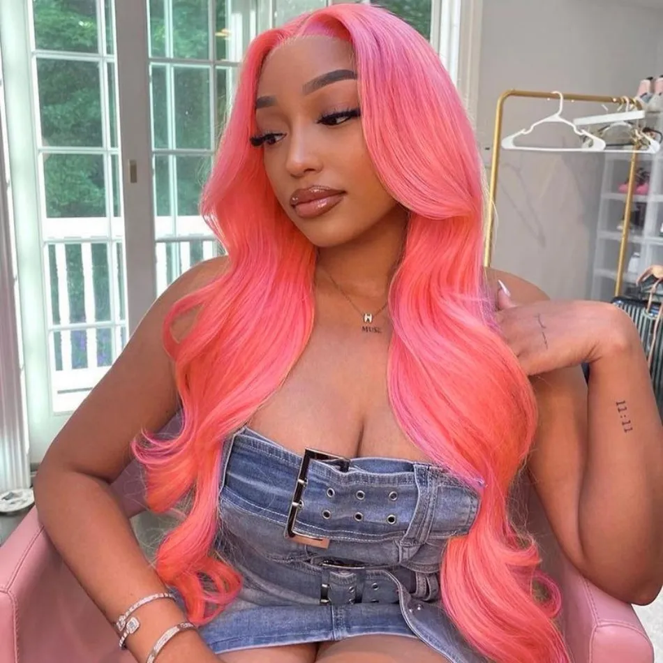 Pink Human Hair Wig Body Wave Lace Front Wig 13X6 Hd Lace Frontal Wig 230 Density Brazilian Hair 40 Inch Colored For Black Women
