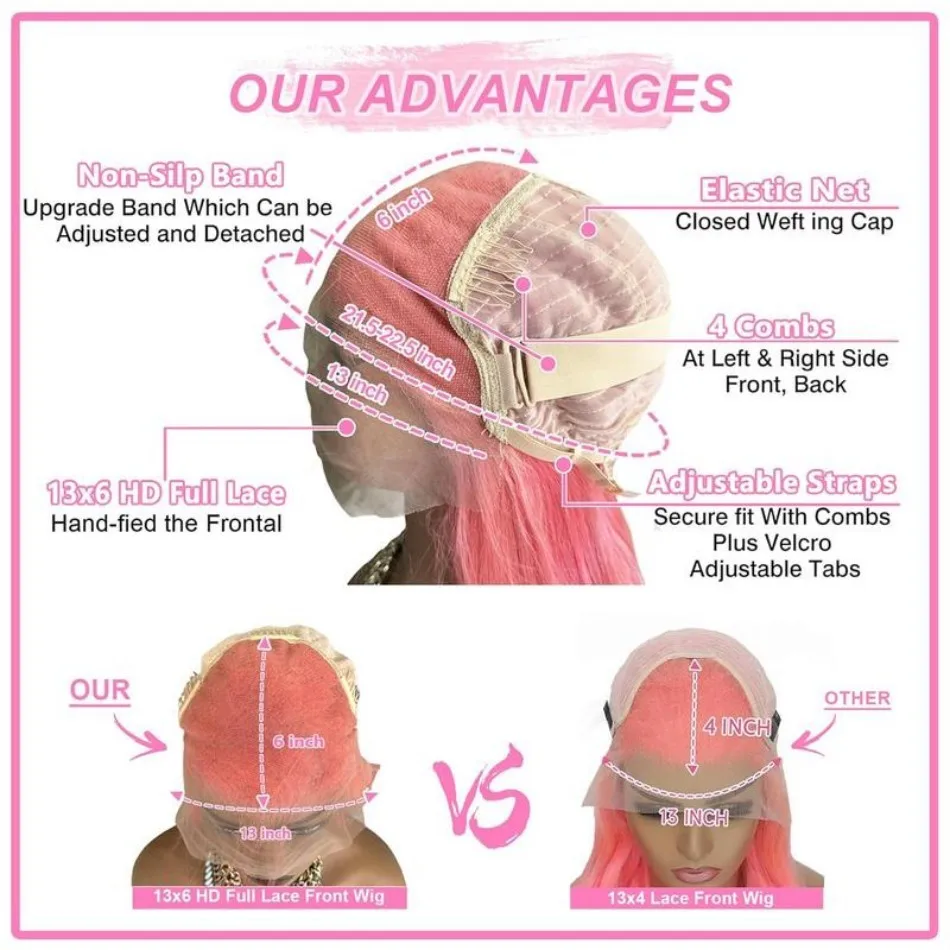❤Human Hair Material: Pink Human Hair Wig Made From Unprocessed 12A Grade Brazilian Virgin Hair,100% Humanm Hair, No Shedding And Tangling, No Terrible Smell, Soft And Silky, Comfortable And Healthy.